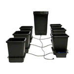 Das System besteht aus 6 Unterschalen mit Abdeckungen, 6 x AquaValve 9mm, 6 x Matrix-Disc, 6 x Wurzelsperre Kupfer, 6 x 15 Liter Topf, 47 Liter Tank mit Deckel und Anschluss-Zubehör.