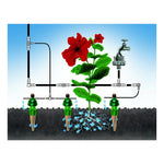 Das passiv-automatische Blumat Tropf System für die Bewässerung von Pflanzen. Das System basiert auf einem Fühler in einem Tonkegel der über eine Schlauchverbindung das Wasser tropfenweise zuführt. Der Kegel öffnet sich wenn die Erde trocken wird, gibt Wasser und Nährlösungen an das Substrat ab und schliesst sich bei ausreichender Feuchtigkeit wieder. Es ist keine Pumpe erforderlich, Blumat arbeitet mit leichtem Wasserdruck der mit einem angebrachten Druckreduzierer an der Leitung, oder dem Gefälle eines höher gelegenen Wassertanks erzeugt werden kann. Dabei reichen 50 cm eines 5 Meter Schlauchs aus.