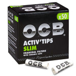OCB Activ Tips Slim 7 mm, Aktivkohlefilter um die Schadstoffaufnahme zu mindern. Die Filter haben beidseitige Keramikkappen, sie werden in dünne Zigaretten eingedreht und führen zu einem angenehm milden Rauch.