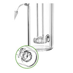 Der Circ Vorkühler hat einen 18,8 Schliff, der Anschluss für den Bongkopf ist weiblich, das Anschlussteil für die Bong männlich (Kernschliff). Der Kernschliff ist nach unten schräg angewinkelt und sehr gut für Bongs geeignet die über einen seitlich gelegenen Anschlussbereich mit einem Winkel von 40°-45°verfügen. Durch den freiliegenden Schliff und kompakte Bauweise der Wasserkammer eignet sich der Perkolator für sehr viele verschiedene Beaker und Standard-Bongs.