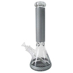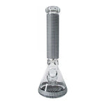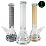 Stabiler Eisbong mit GHODT-Logo, Kickloch und einem zweiteiligen 18.8 Chillum mit Diffusor. Der Bong ist 35cm hoch und kann dank des Eisfachs den Rauch angenehm kühlen. Tagsüber mit Checkerboard-Muster, abends leuchtet die Bong grün.