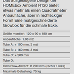 Die HOMEbox Ambient Q240+ bietet mit 240x120cm eine Nutzfläche von 2,88 qm, d.h. Platz für ca. 12-25 Pflanzen, die durch die Höhe von 2,2m auch etwas größer werden können.