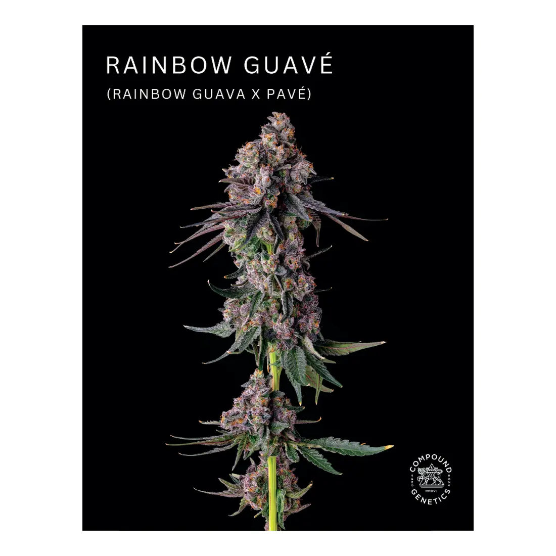 Rainbow Guavé wurde für Grower entwickelt, die auf der Suche nach kräftigen Terpenen sind. Im Vordergrund stehen tropische Guave und Papaya, gefolgt von einem klaren, herben Abgang mit Benzinartigen Noten durch Pavé.