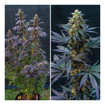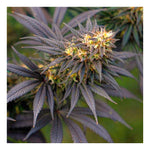 Die Pflanzen sind sehr dunkelgrün und manche Blätter sind violett gefärbt. Manche können fast schwarz aussehen. Das macht diese Pflanzen zu einer echten Augenweide. Das spektakuläre Aussehen wird durch die glitzernden weißen harzigen Trichome verstärkt, die sich deutlich vom dunklen Laub der Pflanze abheben.