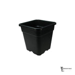 4-eckiger Pflanzentopf aus schwarzem Kunststoff..