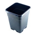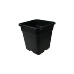 4-eckiger Pflanzentopf aus schwarzem Kunststoff..