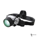 Die praktische LED-Kopflampe von Elektrox mit grüner LED aus robustem ABS-Kunststoff.